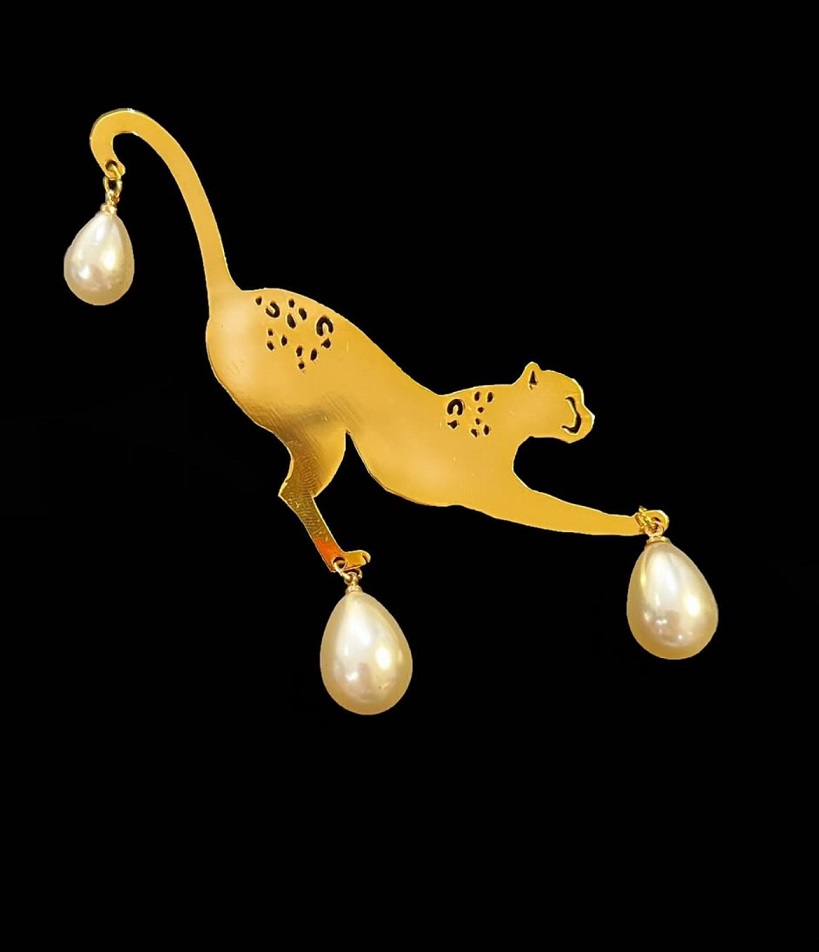 A 21K gold-plated brooch inspired by the Arabian Leopard, finished with elegant drop pearls. Designed with a secure pin fastening for refined styling.