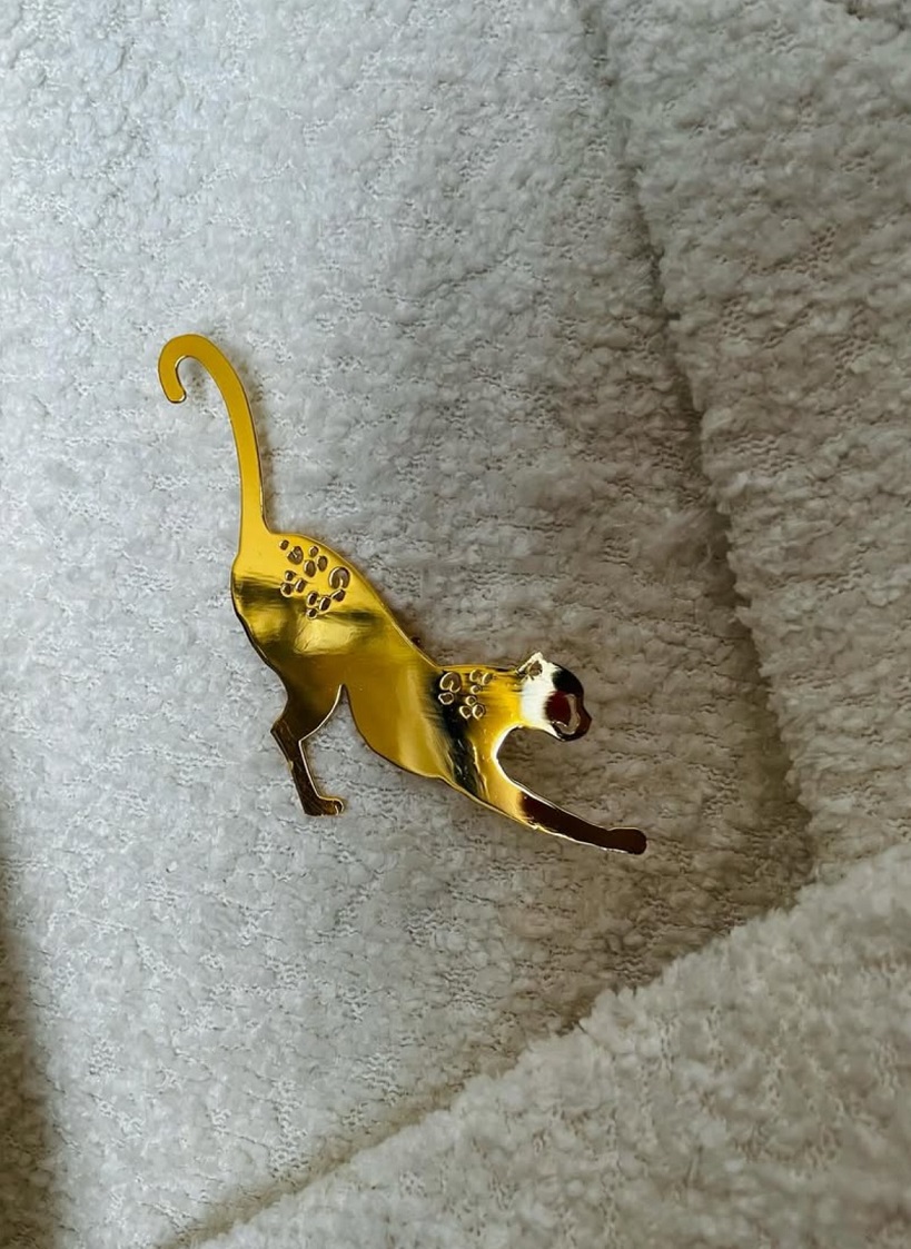 A 21K gold-plated brooch inspired by the Arabian Leopard, finished with elegant drop pearls. Designed with a secure pin fastening for refined styling.