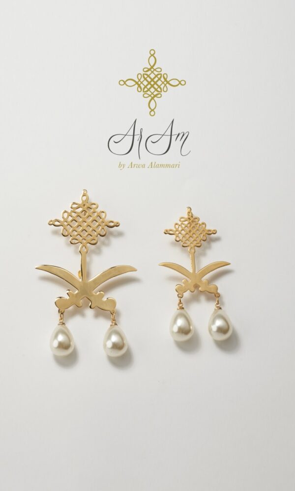 A 21K gold-plated brooch inspired by the Bahrain map, finished with elegant drop pearls.